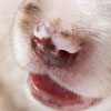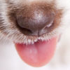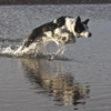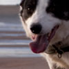 merle border collie pup with tongue out